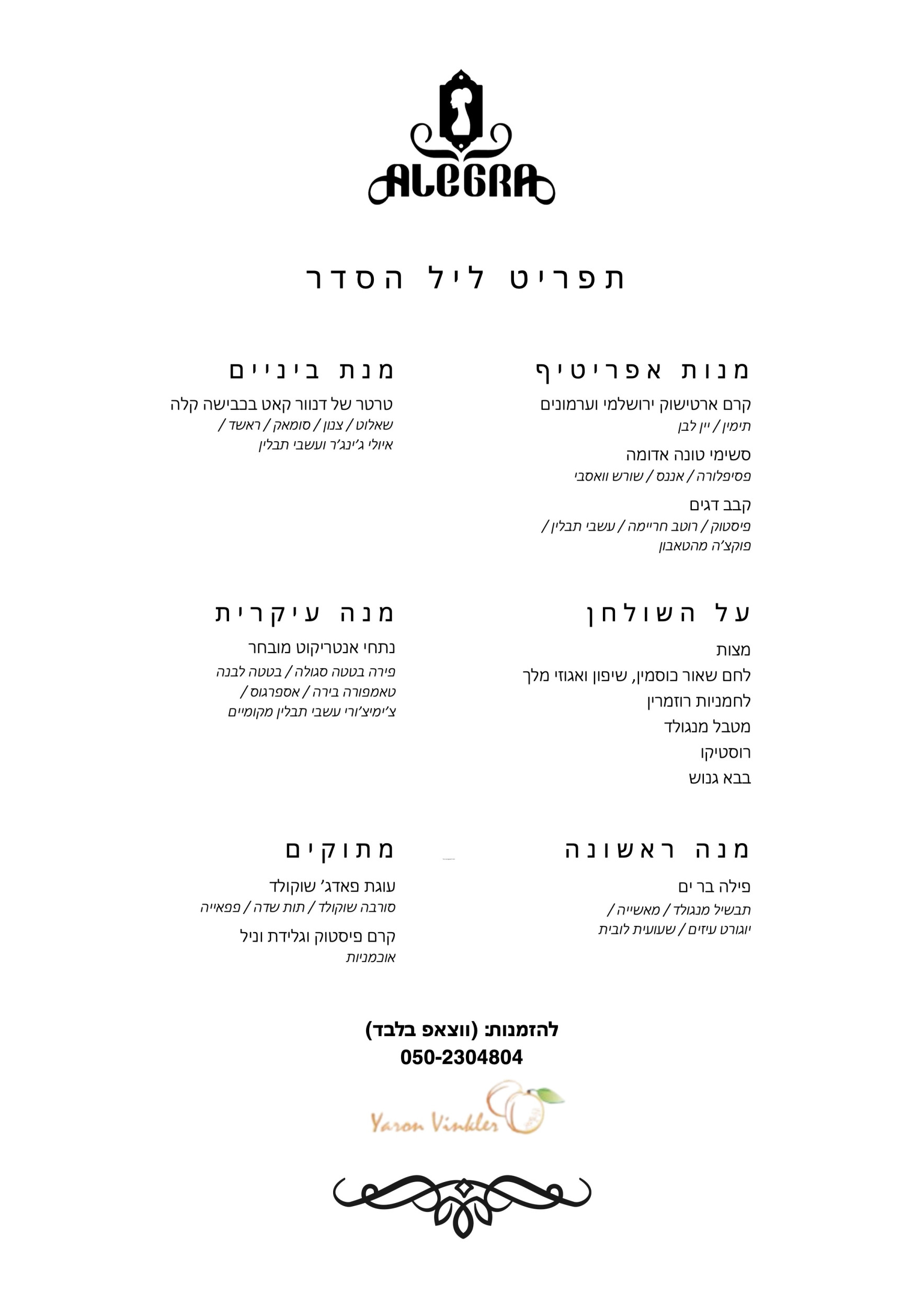 לאחר שהות ארוכה בחו"ל, שף, ירון וינקלר, חוזר לעין כרם השלווה, לייצר ארוחות שף חגיגיות, באווירה קסומה בלאונג מלון אלגרה..,
