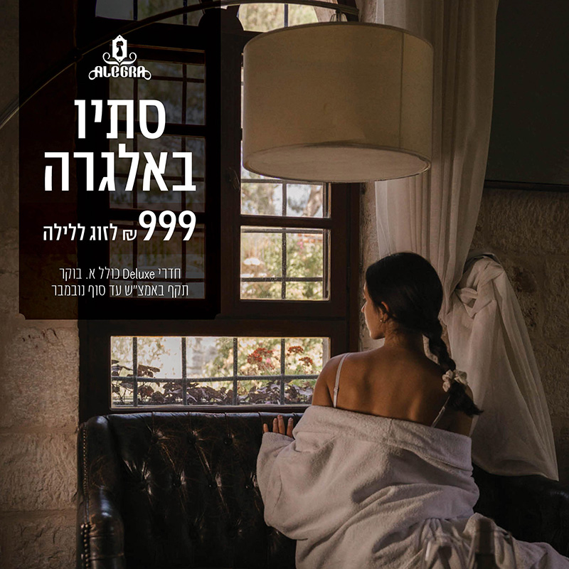 בלב שכונת עין-כרם שוכן מלון אלגרה, מוקד אקסקלוסיבי של עיצוב משובח ושלווה. המלון הוקם בשנת 2011 מתוך חיבור לשכונה ולסיפור אהבה ירושלמי-אסלי. מדובר במלון שקט, בעיצוב אלגנטי-יוקרתי שמשאיר שפע של מקום לרומנטיקה, חלומות ורגיעה.